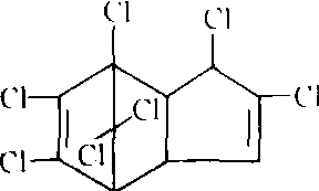 | 释义 | 七氯heptachlor又称七氯化茚。高残毒有机氯杀虫剂。化学名称:1,4,5,6,7,8,8-七氯-3a,4,7,7a-四氢-4,7-甲撑-11-1-茚。化学结构式如下。纯品为白色结晶体,有轻微的樟脑味,密度1.57~1.59,熔点95~96℃ ,25℃时蒸气压为400×10-4 Pa,几乎不溶于水,在25~29℃时溶解度为0.056mg/L,可溶于多种有机溶剂。对光、水分、空气,低浓度的酸、碱溶液和适当的加热下稳定。工业品含七氯72%,软蜡状固体,熔化范围46~74℃。七氯对害虫有触杀和胃毒作用,残效期较长,可用于防治地下害虫及粮棉作物上的钻蛀性害虫。对大鼠急性口服LD50为100~162 mg/kg,急性经皮LD50为195~250 mg/kg。在环境上残留期长,微量残留药剂进入人、畜体内后,有较强的积累作用,易产生慢性毒害。