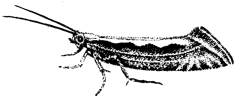 生活习性 年生1~19代不等。在英国威尔士北部,年生1~3代;苏联欧洲中部2~5代; 加拿大渥太华4~6代;美国科罗拉多7代;印度马德拉斯12代。中国辽宁兴城年生3代;杭州9~14代,以14代为主; 台湾台北市18~19代。由于雌虫产卵期可近于或长于下代幼虫期,所以发生严重的世代重叠,杭州9月可8代重叠。在北欧、北美36°N以上地带不能越冬,这些地区的虫源每年随季风迁来,但中国新疆伊犁河谷(44°N左右)还有小菜蛾越冬。日平均气温在10℃以下时,成虫不能飞翔。羽化时成虫即可交配。雌雄均属多配性,雌虫一夜能交配3次以上,每次1小时左右。雄虫一生能与20~30头雌虫交配。越冬5个月后的雄虫仍能使雌虫受精。雄虫的精包能在雌虫体内维持96小时,后被酶水解。已鉴定的雌性性外激素为顺-11-十六碳烯乙酸酯和顺-11-十六碳烯醛两种。经交配的雌虫当晚即达产卵高峰,产出全部卵量的20~30%。每雌平均产卵250粒左右,最高可达600粒。多数卵产于晚间,自然雌雄性比1:1.06,灯下性比为1:1.40左右,雄虫上灯能力较大。雄虫增多会干扰雌虫正常产卵。长日照处理幼虫,能诱导多产卵。未经交配的雌虫,产不育卵,但产卵前期延长到11.5天,交配雌虫产卵前期仅为几小时。未经交配雌虫寿命为交配雌虫的3倍以上。卵散产于叶背为主,也产于外露茎、离层处,偶见3~5粒成堆。1龄幼虫潜叶,2龄后多在叶背取食,留下半透明上表皮,受惊幼虫迅速倒退或吐丝下垂。卵、幼虫和蛹的发育历期与日均温分别存在着下列关系Y'e=1 997x-2.0625,Y'1 =4 345x′-2.0258,Y′p=2 427x′-2.0025。小菜蛾的发育起点温度和完成1代的积温与地理种群有关,分别为7.4~9.5℃和229~312日度。在田间,幼虫呈负二项分布,但随着幼虫的成长,随机性逐渐加大。 已发现的幼虫和蛹寄生物约50种。常见的幼虫寄生蜂为菜蛾绒茧蜂和姬蜂,幼虫到蛹期的跨期寄生蜂为菜蛾啮小蜂,它也是菜蛾绒茧蜂的重寄生物。颗粒体病毒病是小菜蛾幼虫的常见病。在实验条件下,苜蓿夜蛾的核多角体病毒也能感染小菜蛾幼虫。在潮湿季节,虫霉菌是小菜蛾幼虫的病原物。 在一定的种植范围内,避免十字花科作物周年连续栽培是压低大发生的一项预防性措施;在十字花科植物中间种适量的茄科植物有驱虫产卵作用;艾菊的提取物有驱成虫、抑制幼虫取食的功能;黑芥子硫苷酸钾和丙烯异硫氰酸盐是成虫产卵、幼虫取食的刺激物; 高压杀虫电网比黑光灯有更好的诱杀怀卵成虫效果;在苏芸金杆菌芽孢晶体复合体对小菜蛾施以强大的选择压力(LD90)的情况下,经连续10代选择,小菜蛾幼虫对它不产生抗性品系;保护和人工助放菜蛾绒茧蜂有压低小菜蛾自然种群的作用,中国台湾用米蛾和粉斑螟作菜蛾绒茧蜂的大量繁殖寄主。在获得大量供试昆虫的技术方面,用发芽萝卜籽已能成功地周年饲养小菜蛾,并可一生不换饲料,以黄豆粉、甘蓝叶等配置成的半人工饲料已能繁殖数代。用剂量为100伦琴/分左右的钴60辐照羽化前1~2天的后期蛹,则羽化的雌虫完全不育,雄虫精子70%左右不育。子代幼虫死亡率达80%以上,F1代还表现出更高的遗传不育效应和死亡率。通过自然雄虫,不育雄虫为1:6或1:8释放,上述不育效应已在1~2亩的覆盖笼罩内获得证明。在每一个散发器中加入0.1毫升的人工合成性外激素混合物1:1能诱到雄虫,顺-11-十六碳烯醇是增效剂,以上述三成分5:5:0.1混合能捕到更多雄虫; 诱捕效果有时超过黑光灯。在雌虫性诱活动中,尚有部分微量成分未被鉴定出来。保幼激素类似物Z R-512和几丁质合成抑制剂灭幼脲能影响幼虫发育、蜕皮以致死亡。美国佛罗里达州将化学防治指标定为≥1.0“窗孔”/株。嘧啶氧磷、杀螟丹、乙酰甲胺磷、辛硫磷、拟除虫菊酯类等叶背喷雾均有效。 小菜蛾diamond back mothPlutella xylostella L.,昆虫纲,鳞翅目,菜蛾科。世界性广布种。寄主以十字花科蔬菜为主。成虫翅展12~15 mm。体灰褐,前翅中央有黄、白色三度曲折的奶油色波纹,静止时两翅折叠成屋脊状,奶油色部分合并成三个连串的斜方块(见图)。末龄幼虫体长约10 mm,第4~5腹节膨大,两头尖细。一年发生数代至十多代,因地而异,中国西、北部以蛹越冬,长江中下游以南地区无越冬滞育现象。成虫昼伏夜出,有趋光、趋化(异硫氰酸酯类)及远距迁飞习性。卵散产或数粒在一起,产在叶背叶脉凹处。初孵幼虫潜叶为害,3~4龄多在叶背或心叶取食。幼虫老熟后在叶脉附近或落叶上结茧化蛹。春秋季发生多。宜尽量避免小范围内十字花科蔬菜周年连作;蔬菜收获后及时清除残株落叶和耕翻土地以减少越冬虫源;点灯诱杀;2龄幼虫盛期后喷洒生物或化学农药。