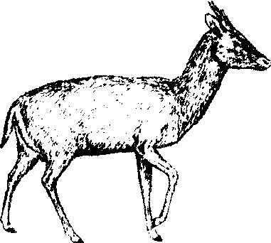 图453 小麂 小麂别名黄麂子。哺乳纲偶蹄目鹿科麂属。栖息于海拔700~2 600米的林缘地带。晨、昏活动频繁。以各种青草和树木的嫩枝、叶、芽等为食。分布于文县、武都等地。小麂为中国特有种,肉瘦为上等野味,皮轻柔美观耐用。甘肃省重点保护野生动物。 |
