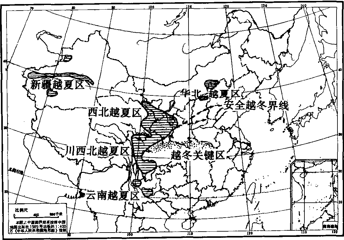 ❷川西北越夏区。包括四川西部的阿坝、甘孜、凉山、西昌等地区。