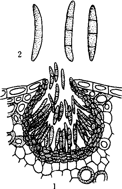 颖枯病的发生发展与小麦的生育阶段,气候条件及栽培管理有关。病菌只能侵染未成熟穗,抗病性随穗的成熟度增强,被害程度减轻,至蜡熟期则不受侵染,这一发生特点与植株含糖量有关,含糖量高,抗性低,穗成熟度高颖壳内含糖量低,抗性也相对提高。高温高湿气候有利于颖枯病的发生发展,特别是小麦扬花期前后多雨,颖枯病常较重。土壤贫瘠或肥水不足,植株长势弱,抗性下降,受害重,缺磷、钾和微量元素镁的田块,颖枯病相对加重。 侵染过程和病害循环 在病残体上越冬或越夏的分生孢子器吸水膨胀释放出分生孢子,藉风雨传播,侵染小麦。侵入寄主体内的菌丝体在表皮细胞间蔓延或进入薄壁细胞,潜育期为8~12天。病菌以菌丝体和分生孢子器在病残体上越冬或越夏,沾附于种子表面的分生孢子也可越冬、越夏。病残体和带菌种子为颖枯病的初侵染源,发病后,病部产生的分生孢子进行再侵染。 病害控制 小麦颖枯病的控制措施有: ❶选育和种植发病较轻的品种,如黑龙江春麦区的克旱9号和新克害9号等; ❷麦收后及时翻耕灭茬,减少田间菌源; ❸避免小麦连作; ❹施足基肥,增施磷、钾、镁肥; ❺小麦抽穗扬花期喷药保护。 小麦颖枯病wheat glume blotch小麦的一种真菌病害。病原菌为半知菌亚门的颖枯壳针孢(Septoria nodorumBerk.)。危害叶片、叶鞘、茎秆和穗部。病小穗颖壳尖端或上半部发生黄褐色病斑,病斑渐呈灰褐色,边缘褐色,病斑上常有白色霉层和小黑点(病菌分生孢子器)。节间受害常致局部组织枯死。叶斑小,褐色,长圆形或不规则形,后渐扩大,中央灰白色,边缘褐色,病斑上密生分生孢子器。病菌随病残体或种子越夏或越冬,种子发芽时病菌侵入幼苗,引起苗枯。病部可不断产生分生孢子借风雨传播引起再侵染。温暖、多雨或高湿有利发病。病菌尚可侵染大麦、黑麦、小黑麦等。种植抗病品种、使用无病种子或进行种子处理、及时耕翻、消除病残体、轮作2年以上及喷施药剂等可控制病害的发生。 |