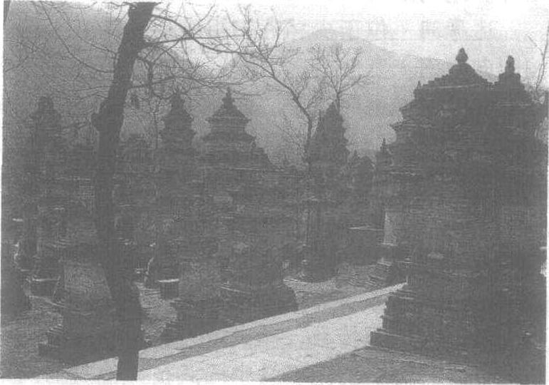 少林寺塔林 初祖庵 位于少林寺西北1000米。现存1座大殿及殿后2小亭。大殿坐北向南,建于北宋宣和七年(1125年),阔深各3间,面积182平方米,高约10米。殿内土龛中供初祖达摩、二祖慧可、三祖僧灿、四祖道信和五祖弘忍的塑像。殿内石柱上雕刻武士、2条游龙、2对舞凤、2个飞天、2条盘龙、凤戏牡丹、孔雀穿花、群鹤闹莲等,刻工精细,清秀美丽。神台须弥座以及石护脚上的卷草、猛狮、武士、孩童、麒麟、水兽与佛像等浮雕,各具风趣。殿后台阶上东西各有小亭1座,四角攒尖,为砖木结构。东亭内塑达摩父母兄弟像,西亭内塑达摩像。大殿周围有宋大观元年(1107年)以后的游人题词碑刻40余块,其中宋代著名书法家黄庭坚、蔡襄的 “达摩颂碑” 、达摩面壁之庵刻石、东亭月台下的梵文碑都极有价值。大殿东南角有一古柏高20余米,树围4米多,传说是六祖慧能从广东移植来的。初祖庵1996年被国务院确定为全国重点文物保护单位。 二祖庵 位于少林寺西南4000米少室山北崖半山腰的钵盂峰顶。现存殿3间,内供二祖慧可塑像。殿前有数座明清碑碣,3株古柏和四眼水井。庵周围有唐、元、明砖塔各一座。 达摩洞 位于少林寺初祖庵后五乳峰上部。洞面向西南,宽3米多、深约7米,相传为达摩面壁的地方,也叫达摩 “面壁石” 。洞前有1座明代双柱单孔石坊,额上南面有 “默玄处” 3字、北面有 “东来肇迹”4字。 |