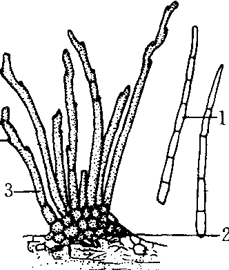 尾孢属 1.分生孢子 2. 子座 3. 分生孢子梗 4.产孢痕 |