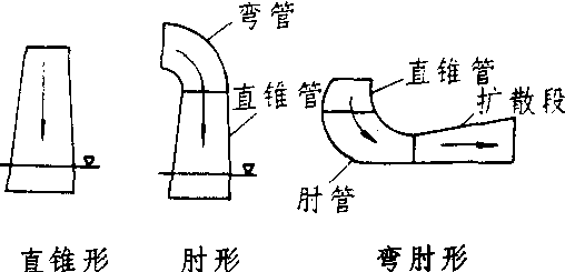 反击式水轮机的泄水部件。其作用有:❶将转轮出口的水流引向下游;❷利用下游水平面至转轮出口处的高程差,形成转轮出口处的静力真空;❸利用转轮出口的水流动能,将其转换为转轮出口处的动力真空。基本类型有:❶直锥形。制造容易,广泛使用于中小型水电站中;❷肘形。由90°弯管和直锥管组成,用于卧轴小型混流式水轮机;❸弯肘形。由直锥管、变剖面肘管和矩形剖面的扩散段三部分组成,用于大中型水电站的立式反击式水轮机,水流经过直锥管进入肘管,使水流变为水平方向,再经水平扩散管流入下游。管内水头损失及出口动能越小,质量越好。