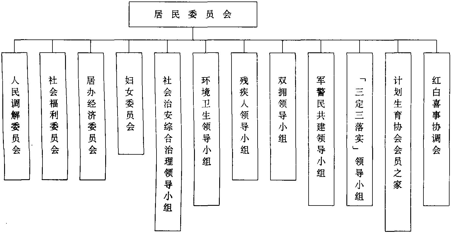 图8-4-1 城市居民委员会组织机构 1980年国家重新公布《城市居民委员会组织条例》,并将居民委员会建设工作改由民政部门归口管理。此后,各地民政部门在有关部门支持下,对居委会进行全面整顿,调整居委会规模,加强居委会的组织建设和制度建设,提高居民委员会干部素质,减轻居委会的工作负担,扶持和保护居委会兴办社会服务事业,切实解决居委会干部的生活补贴、办公经费和办公用房,使居委会的自治能力大为增强。1990年,全省81个市、县共设居委会2492个,有居委会干部8458人。截至1992年底,安徽省18个城市共设置城市居民委员会2500多个。 近年来,安徽城市居民委员会在街道办事处和市政府的指导下,积极向居民宣传党的方针、政策和国家的法律、法令,广泛开展“四有”教育和普法宣传教育、在城市文明建设中发挥着重要作用;积极开展尊老爱幼、保护妇女、儿童合法权益活动;积极做好人民调解工作,开展群众性治安保卫工作和冬防工作;协助有关部门做好社会公益福利事业和社会服务事业,搞好城市社会环境卫生等方面都发挥着重要作用,为城市社会的稳定和城市的发展做出了积极的贡献。 自从新的《居委会组织法》公布以后到1992年底,全省城市实施《居委会组织法》的居委会共610个,占城市居委会总数的24.3%。实施《居委会组织法》后,居委会的组织及制度更加健全,工作作风民主,办事效率提高,居民的民主参与意识增强。居委会团结广大居民贯彻落实党和国家的方针、政策,参与城镇两个文明建设,在兴办第三产业,繁荣城镇经济,创建文明卫生城市,社会治安综合治理,计划生育,开展社会服务等方面都作出了贡献。为树立榜样,宣传先进,推动街道和居委会建设,全省开展了先进街道办事处、模范居委会和优秀居委会主任评比表彰活动。共评选出地、市级先进街道办事处28个、模范居委会159个、优秀居委会主任229个,省级先进街道办事处20个、模范居委会30个、优秀居委会主任30名,并分别给予表彰。 居民委员会简称居委会。中国城镇中的基层群众性自治组织。在市辖区、不设区的市人民政府、镇人民政府或其派出机关 (街道办事处) 的指导下,按照居民居住区设立。下设人民调解、治安保卫、公共卫生等委员会,办理本居住地区的公共事务和公益事业,调解民间纠纷,协助维护社会治安,并向人民政府反映群众的意见、要求和提出建议。 居民委员会居民委员会是中国基层群众性自治组织,在农村为村民委员会。基层群众性自治组织不属于国家机关,但是,宪法特别作了规定,这里专门加以论述。1982年宪法规定: 城市和农村按居民住地区设立居民委员会或者村民委员会。它们同基层政权的相互关系由法律规定。居民委员会,村民委员会的主任、副主任和委员由居民、村民选举。居民委员会、村民委员会的任务是办理本居住地区的公共事务和公益事业,调解民间纠纷,协助维护社会治安,并且向人民政府反映人民群众的意见、要求和提出建议。为了实现上述任务,在居民委员会、村民委员会之下设立人民调解、治安保卫、公共卫生等委员会。根据1952年公安部颁布的 《治安保卫委员会暂行组织条例》、1954年政务院颁布的 《人民调解委员会暂行组织通则》、1954年底全国人民代表大会常务委员会通过的 《城市居民委员会组织条例》 以及1982年宪法的规定,中国城镇和农村的广大居民都已经充分地组织起来。人民群众通过居民委员会、村民委员会以及下设的各种委员会管理社会事务,办理公共福利和其他事业,解决生活、学习、文娱、体育和卫生等方面的问题,保护和改善本区域的环境; 他们宣传遵纪守法,进行自我教育; 协助政府,与犯罪分子的破坏活动作斗争; 排解人民内部纠纷,调解一般民事和轻微刑事案件,保障良好的社会秩序,保护群众的权利和利益。 居民委员会城市以及乡、民族乡、镇所在地建立的自我管理、自我教育、自我服务的群众基层组织。1982年颁布的《中华人民共和国城市居民委员会组织法》规定,居民委员会管辖范围原则,一般为700—1000户范围内设立。居民委员会由主任、副主任和委员共5—9人组成,每届任期三年,成员可连任。1997年底,全区已建立城镇居民委员会1843个(其中家属委员会375个),委员总数8335人。 居民委员会甘肃自1949年起,在建立区街政权的同时, 在城市居民中建立居民行政小组。1952年在兰州开始试办居民委员会。1954年12月, 《城市居民委员会组织条例》公布, 开始全面组建居委会。至1998年全省共设立居民委员会2 416个,另有厂矿企业家属委员会445个。 |