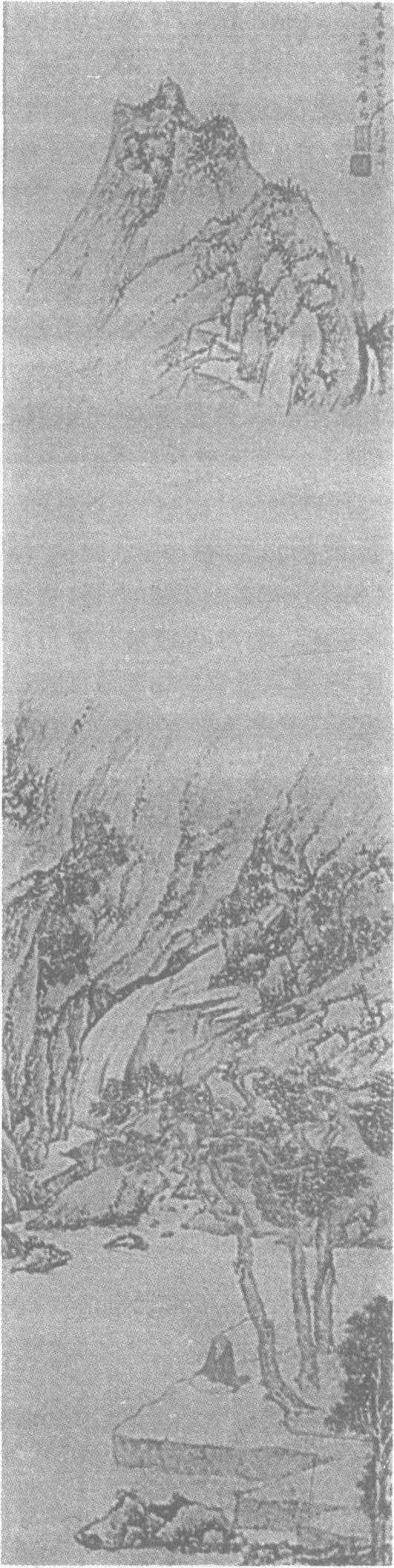 | 释义 | 居节松荫观瀑图轴明。居节(见《居节潮满春江图轴》条目)绘。纸本设色。纵120厘米,横30.5厘米。北京故宫博物院藏。此图表现一位雅士临溪观瀑赏景的游乐图景。远处绘山峦巍峨耸立,山势峭拔,气势雄伟。山路蜿蜒直通山巅。飞瀑高悬,直落千仞。山腰全被云雾遮挡,烟岚弥漫。山腰下,瀑流注入山下的清溪之中,似能听到哗哗的流水声。近处松木蓊郁凝翠,高松下一人临溪盘坐,仰望高山瀑布,正陶醉于大自然山青水秀的优美景色之中,怡然自得。画风近似文徵明。构图新颖,笔墨工细,山石坡岸简笔勾皴,重墨点攒。设色雅淡。右上角自题:“万历甲戌秋日,写于玉峰舟中,商谷樵人居节。”下钤〈士真〉、〈居节印〉二印。