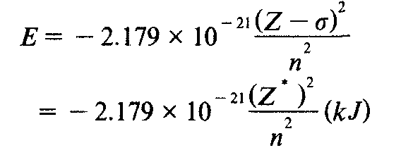 J.G.斯莱脱根据原子光谱实验所得到的能级数据,归纳出近似估算屏蔽常数σ的规则 (参见“斯莱脱规则”)。由于屏蔽作用,多电子原子中电子的能量E公式为: