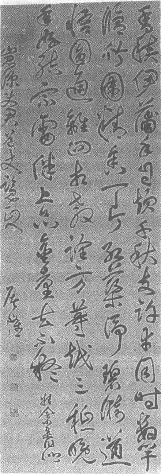 | 释义 | 屠隆行书精舍小集诗轴明。纸本。纵289厘米,横105.9厘米。上海博物馆藏。屠隆(明嘉靖二十一年—明万历三十三年,即公元1542—1605年)。字长卿、纬真,号赤水、鸿苞居士。鄞县(今浙江省宁波)人,万历五年(即公元1577年)进士,曾任青浦知县,官至礼部主事。罢归,家贫卖文为生,尝召名士饮酒赋诗,纵游九峰三泖而不废吏事。曾向沈明臣学诗,王世贞称其诗“有天造之致”,与胡应麟、李维桢等人为当时诗坛的“后五子”。尤擅词曲、工音律。曾写《昙花记》、《修文记》。著有《鸿苞集》、 《考槃余事》、《由拳集》、《白榆集》。《明史》有传。此幅行书写自《精舍小集》七言律诗一首:“香积伊蒲手自炊,千秋支许幸同时。数竿修竹园精舍,一片红蕖停碧漪。道悟圆通离四相,教诠方等越三只,晚年好结宗雷伴,上品金台知不疑。”款署“精舍小集作似昆源使君道丈览政屠隆”。款下钤白文<屠隆之印>、<屠纬真氏>、<三宝弟子>三印。行书笔法圆熟舒朗,行笔点、画、环、钩无不刚劲挺健有力,布局茂密充实,紧凑贯通,如墨龙盘结之状,气势雄放,是屠隆的书法精品。 |