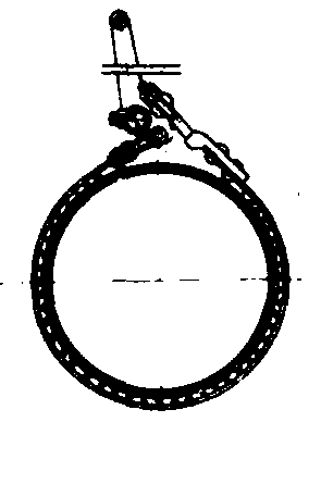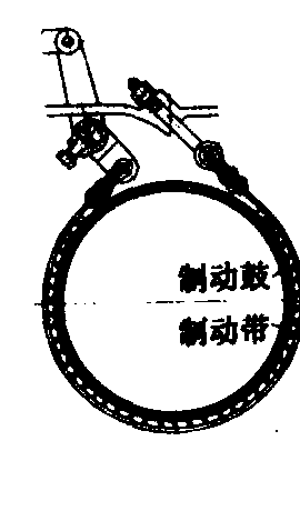 图4 带式制动器示意图 制动机构 其主要部分是制动器。广泛采用带式制动器(图4)。按其结构特点可分为单端拉紧式、双端拉紧式和浮式。单端拉紧式多用在小功率拖拉机上,双端拉紧式广泛用在中等功率的拖拉机上,浮式多采用在大功率拖拉机上。根据摩擦衬面的工作条件,制动器又有干式和湿式两种型式。 |