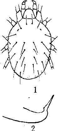 山楂叶螨 1.雌螨背面观 2.阳茎侧面观 |