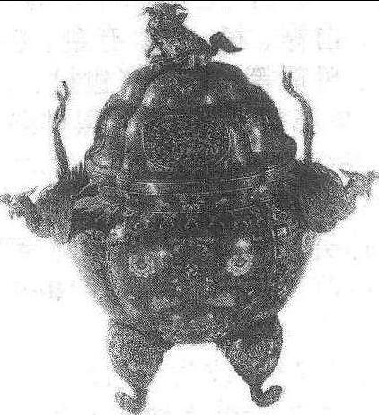 嵌珐琅凤耳四足盖炉 |