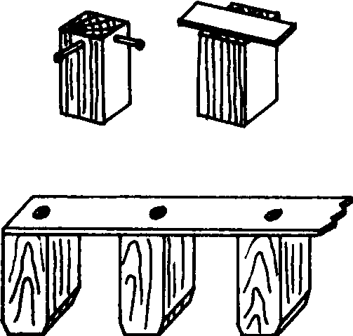 木卡子 欧美各国养蜂者常采用一种齿状固定器取代箱上沿的铁引条,框耳架在齿谷内固定巢框间距。 箱底距离卡是用直径4~5毫米的镀锌丝制成的多个等距离齿状物,齿谷宽等于巢框下梁宽,齿峰宽等于蜂路距离,可固定于箱底。 |