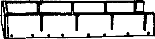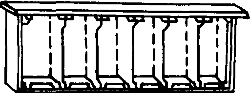 图5 圆形巢蜜格框 “T”型托架系加拿大D. A.琼斯在1883年用马口铁制造(图6)。宽度30毫米,长度按巢蜜继箱的长或宽而定。“T”型托架安装在巢蜜继箱下部。 生产巢蜜时,在每行巢蜜格之间,用一块薄木板或隔离栅隔开,使板(栅)面与巢蜜脾面相距5毫米。