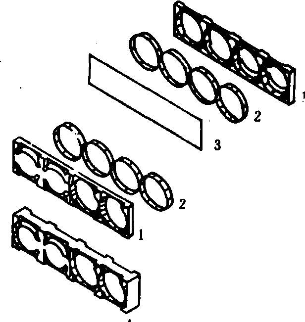 图1 巢蜜格 巢蜜盒 巢蜜的外包装,按巢蜜的形状、大小设计。可用纸板或透明塑料等材料制作。 薄型巢础 生产格子巢蜜必须采用纯净蜂蜡特制的薄型巢础。生产大块巢蜜用的是普通巢础,比格子巢蜜用的巢础稍厚(见巢础)。 巢础模盒 木板制成的切开巢础的模型(图2)。在盒的两个长壁上,按需要规格预先锯成细缝,用时将若干张长条形巢础整齐地叠在盒内,用薄刀或弓锯沿盒壁锯缝将巢础裁开。