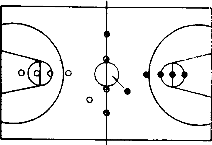 器材 小篮球4个。 场地 在篮球中线上放4个小篮球, 间隔2米左右作为双方的营门。每队以半场为营, 中线为界。 游戏方法 把学生分成人数相等的攻守两队, 各成纵队面对营门1米处站立。教师发令后, 攻队排头利用虚晃,变向跑等假动作摆脱守方的排头,从营门中进入守方营地。跑进对方营地为攻方得1分, 如被对方拍击到,守方得1分。换人再战,交换攻守。在规定的次数内, 以得分多者为胜。 游戏规则 ❶攻方必须从营门中间进入对方营地。 ❷守门不能越过营门去拍击对方。 |