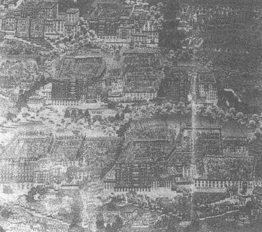 | 释义 | 布达拉宫落成图壁画清。纵210厘米,横250厘米。西藏自治区拉萨市布达拉宫红宫司西平措殿二楼门内一侧壁画。公元七世纪唐朝的文成公主入藏与吐蕃赞普松赞干布成亲,为此而建布达拉宫。17世纪中叶,达赖五世用了50年时间重建布达拉宫,这座规模雄伟的建筑凝聚着汉藏两族人民的心血。工匠在司西平措殿绘制了巨幅布达拉宫落成图,此为其中的一部分。画匠以俯视的角度表现了宫殿落成后万民欢庆的场面。画面上宫殿房舍层层罗列,有的自成一体,有的以台阶相连。佛像金碧辉煌,僧像人物众多,他们在歌舞、娱乐,有的在作法。建筑之间衬以绿树和祥云,场面恢宏,气势庞大,既是藏族绘画艺术的优秀作品,又是史实的真实再现,十分珍贵。