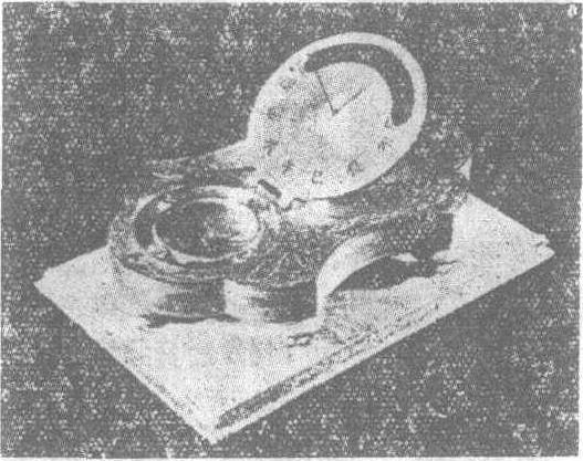 | 释义 | 带指南针赤道式日晷清。底座长15厘米,宽9.5厘米,晷针长3.2厘米,直径0.08厘米,指时盘直径6.7厘米。北京故宫博物院藏。赤道式日晷(见“赤道式日晷”)。指南针是利用磁针测定方向的一种仪器。这是一种便携式赤道日晷,全部用铜制成,底座下部有六个可调节水平的螺钉,底座的一侧放置带晷针的指时圆盘,盘外圆周上刻有时刻线,上注:“子、丑、寅、卯、辰、巳、午、未、申、酉、戌、亥”12时辰。每一时辰再细分为小格,即每一小格相当于15分钟。指时盘与底座面的交角可以调节,以适应用。在指时盘的“卯”“酉”之间一段凹下宽约9毫米的圆弧,其作用是提高测时的精度,特别是在靠近春分和秋分的日子,能观测到针影落在时刻线间的位置。底座的另一侧放置指南针。