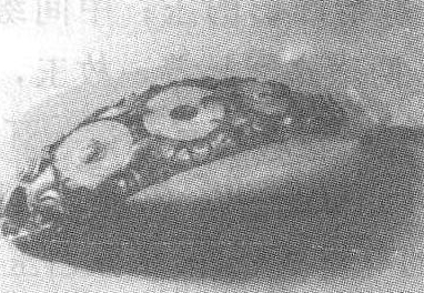 带钩(河南辉县战国墓出土) 带钩腰带上的钩,饰物。也称为“銙”。相传为战国时赵武灵王仿自西北游牧民族。或指当胸带使用的青铜带钩而言。初期,只限于甲服使用,后才取缔丝绦而转用到一般贵族王公袍服上。汉人称 “师比”或 “犀毗”,社会上流行一时,以致于俗语有“宾客满堂,视钩各异”的记载。带钩式样也较多,小的寸许,大的长一尺,宽约一寸。制作的材料有青铜、铁、银、玉、骨、象牙等。东汉晚期,为新型的银质九环带所代替。
