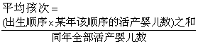 一定时期(通常为一年)内活产婴儿的平均出生顺序数。说明该时期生育的妇女平均活产婴儿数。计算公式为: