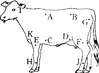 | 释义 | 平均皮温mean skin temperature根据畜体不同部位的皮肤温度,按所占全身皮肤面积的%计算出的温度。距离畜体深部越远,体温越低,其皮温亦相应较低。皮肤与外界之间仅隔被毛,受环境影响较大,致使四肢、耳、尾、胸部等皮温差异也较大。常用平均皮温代表之。平均皮温测定是在身体有代表性的部位定若干点,以各点皮肤面积占全身皮肤面积的%(系数)相加求得。如牛的部位系数分别为:躯干上部(A、B4点)为0.25、躯干下部(C、D4点)为0.25、四肢上部(E、F、G6点)为0.32、四肢下部(H、J4点)为0.12,垂皮(K2点)为0.02和耳朵(Ⅰ点)为0.04。 平均皮温可用于计算平均体温。