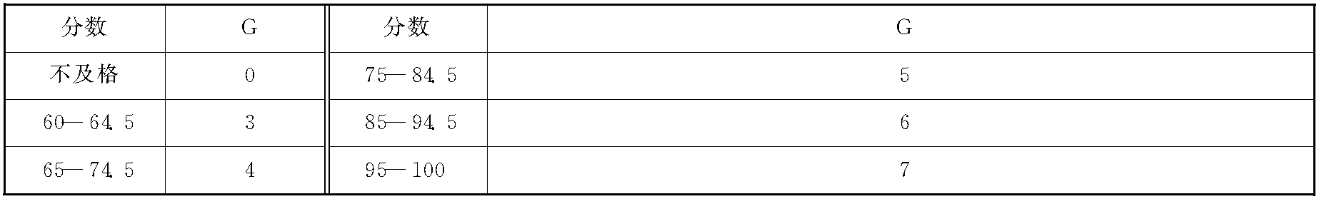 其中,N表示该群体(学校、省、全国)在校修读大学英语的总人数;MGS表示平均级点分;Gi第i个考生的级点,其计算方法为: