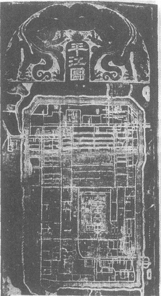 | 释义 | 平江图碑南宋理宗绍定二年(公元1229年)吕梗、张允迪共刻(民国六年,即公元1917年加刻过一次)。高284厘米,宽146厘米,江苏省苏州碑刻博物馆藏。平江即今日的苏州,此图刻绘的是宋代苏州的详细情况。碑上端正中刻“平江图”三字,四边分题着东、西、南、北四字(以北为上),中间的图中清晰地标明了苏州城的山脉、河流、湖泊等自然地理分布,城墙、官署、寺观、书院、商行、第宅、楼阁等布局及街道、桥、园林等设置情况。图示表明,宋代的苏州呈长方形,由外城、内城两重城组成,外城平面呈矩形,辟五座门(为东二,西、北、南各一),特征是水、陆门并列。城内街道有“丁”字形和“十”字相交两种形式,其多与河流并行,北部居住区内的住宅多面街背河,城南部主要分布着官署、寺观和学校等。内城居于外城的中部,南、西两面辟门,这是苏州府衙所在地。有平江府衙、平江军署、路铃衙、教场等43座重要建筑,它为研究唐宋两朝官署建筑提供了重要例证。据图可知,当时的苏州城内有东西向河道14条,南北向河道6条,河流数以百计。河道出入城墙的地方建门和闸。特征较强的建筑有65座跨街牌坊,359座桥,50多个寺观庙宇及12座古塔。平江图碑刻是我国现存历史最久,最完整的城市平面图,是目前所见最古的苏州城图,同时又是流传至今的宋代城市图中最详尽、细密的一幅,它为研究宋代城市规划、衙城形制等提供了珍贵的史料,对后代王府衙署建筑布局产生过很大影响。1961年,它被公布为全国重点文物保护单位。