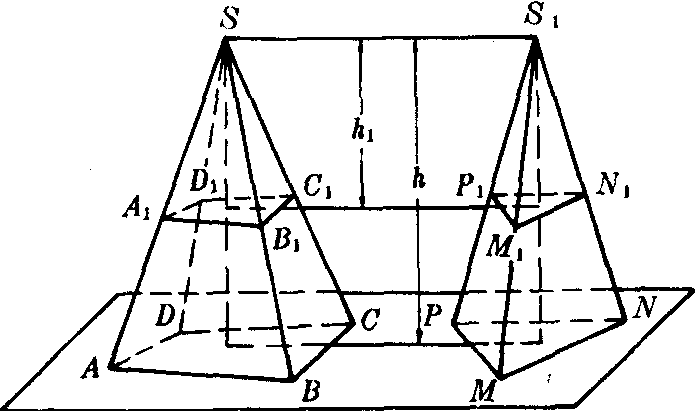 图2 如图2,两个棱锥S和S1被平行于底面的平面所截,所得截面分别是多边形A1B1C1D1和M1N1P1,两个棱锥的高都是h,从顶点到截面的距离都是h1,则