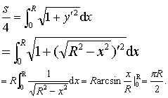 例 求半径为R的圆的周长s, 解 方程x2+ y2 = R2表示一个半径为R的圆. 由对称性知,要求该圆的周长,只需求该圆在第一象限部分的弧长,再四倍即可. 于是