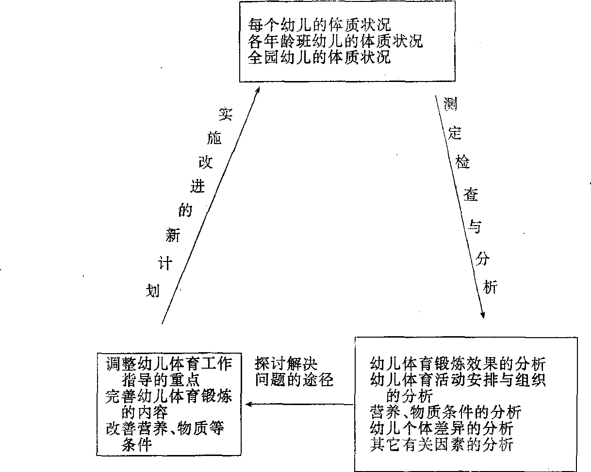 | 释义 | 幼儿体质的测定与评价工作you’er tizhi deceding yu pingjia gongzuo对幼儿进行定期的体质测定与评价,可以了解和掌握幼儿体质的发展现状及其发展变化的趋势、规律,更好地检查和评定幼儿体育工作以及增强幼儿体质的实效,以此分析、研究影响幼儿体质强弱的各种因素,并从加强科学的体育活动与身体锻炼、改善营养和卫生条件等方面出发,及时采取相应的措施,以便更加有效地增强幼儿的体质。幼儿体质的测定与评价工作,是研究幼儿体质状况的两个紧密相连的环节。幼儿体质测定与评价的整个过程,可以从下列图示中反映出来。深入开展幼儿体质的测定与评价工作,加强幼儿体质的调查研究,也是增强整个中华民族的体质、提高人口素质的一项重要措施。