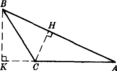 如图,在△ABC中,∠ABC为锐角,∠ACB为钝角.则AC2=BC2+AB2-2AB·BH;AB2=AC2+BC2+2AC·CK. 简单证明如下:BC2=BH2+CH2=BH2+AC2-AH2=BH2+AC2-(AB-BH)2=AC2-AB2+2AB·BH,因此,AC2=BC2+AB2-2AB·BH;类似地,AB2=BK2+AK2=BC2-CK2+(AC+CK)2=AC2+BC2+2AC·CK. |