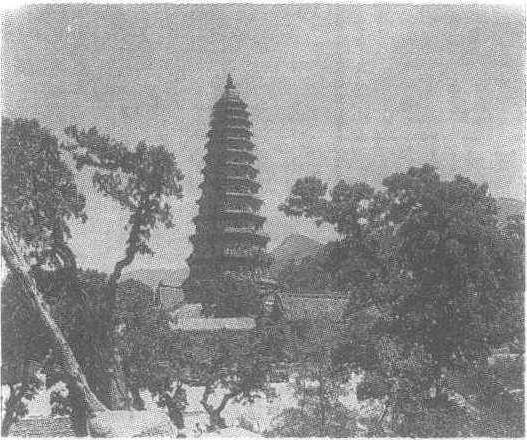 广胜寺飞虹塔中国古塔。位于山西洪洞县霍山南麓。塔建于山门与大殿之间,明嘉靖六年(1527)建造,塔呈锥形,平面为八角形,13层,高47.31 m,塔内有梯可达10层。墙身外壁镶红、橙、黄、绿、青、蓝、紫7色琉璃型砖,故又称七彩琉璃塔。塔檐下的斗拱、壁柱、雀替、勾栏及佛、菩萨、力士、团龙、莲花等琉璃饰物,一层一组图案,形式多样。飞虹塔为中国古代琉璃宝塔之珍品。 |