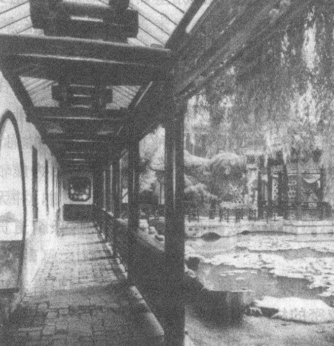 | 释义 | 廊俗称走廊。指两两建筑之间的通道,或指一条独立而有盖顶的通道。此外,单体建筑前后、左右屋檐向外伸出的部分,亦称为廊。“廊者,庑出一步也”(《园冶》)。此种廊有带前后廊的,亦有带周围廊的。其中建筑物前后出一步架的叫单步廊,二步架的叫双步廊,双步廊上多安卷棚顶。廊的布置往往“随形而弯,依势而曲或蟠山腰,或穷水际,通花渡壑,蜿蜒无尽” (同上),曲折随意,富于变化。廊的大量使用,是古代建筑一大重要特点。廊按形式分有亭廊、曲廊、水廊、爬山廊、卍字形廊、里外廊等多种。此外,还有作双层通廊以通楼上楼下的称为阁道。