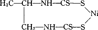 又称甲基代森镍。有机硫杀菌剂。化学名称:N,N-异丙撑双(二硫代氨基甲酸)镍。化学结构式如左。原药为褐色晶状粉末,主要用于防治水稻白叶枯病,具保护作用,大鼠经口急性毒性LD50为2500 mg/kg。