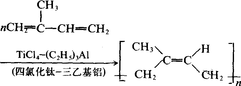 异戊二烯是合成橡胶的重要单体,在齐格勒-纳塔催化剂存在下自身聚合,生成顺-1,4-聚异戊二烯,与天然橡胶结构相同,性能相似,称为合成天然橡胶: