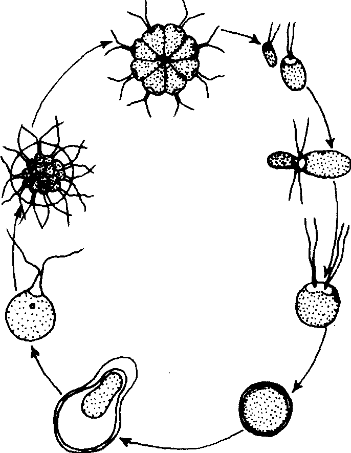 图552 实球藻的异配生殖 异配生殖两个形态、大小显著不同的性细胞(异形配子或卵和精子)相结合的一种有性生殖。为多细胞生物的主要生殖方式。 异配生殖anisogamy形状相似,但大小、结构与行为不同的两个配子相互结合的一种有性生殖方式。其中小而运动能力强的为雄配子,大而运动迟缓,贮藏较多营养物质的为雌配子。异配生殖较同配生殖进化。马鞭藻(Cutleria)、线翼藻(Tilo-teris)、间日疟原虫(Plasmodium vivax)等为异配生殖。 |