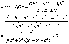 图2 通常把角θ的顶点选在两条异面直线中的一条上. 例 在长方体ABCD-A1B1C1D1中(图2),BC=a,CD=b,DD1=c,且b>a.求异面直线A1C和B1D1所成的角. 解 过C作B1D1的平行线EF,与AB,AD的延长线分别交于F,E两点.则∠A1CE就是异面直线A1C和B1D1所成的角.连结A1E.因为EF∥B1D1,所以EF∥BD.四边形BCED是平行四边形.所以CE=BD= ![]()
