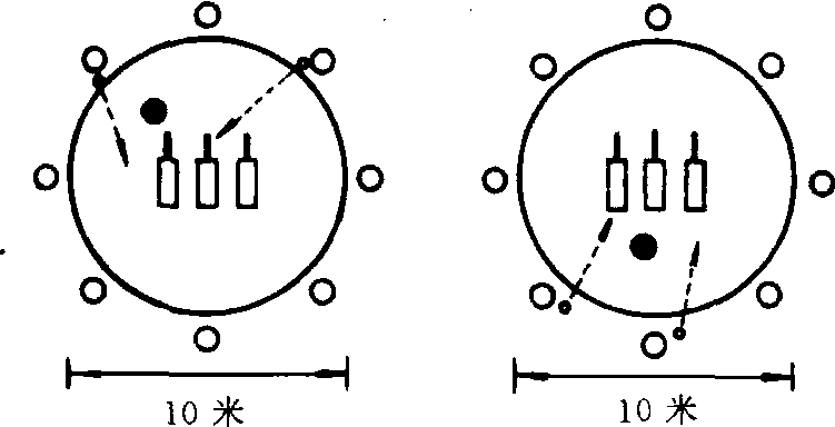 适用于5—6年级。可以提高学生的投掷准确性和快速传球的基本技能。器材 小篮球2个, 手榴弹若干。场地 在篮球场或平坦空地上画两个直径为10米的圆圈, 圈内放几枚手榴弹为地雷。游戏方法 把学生分成人数相等的两个队, 每队选一人担任守卫,其余人分别站在圆圈外担任“工兵”,准备2个小篮球当“炸弹”。教师发令后,“工兵”用球打击地雷,守卫者设法进行阻挡,不让球击中地雷。“工兵”可以互相传球,寻找时机进行攻击。在规定的时间内,击中地雷5次,守卫者失败,调换守卫者。游戏继续进行。