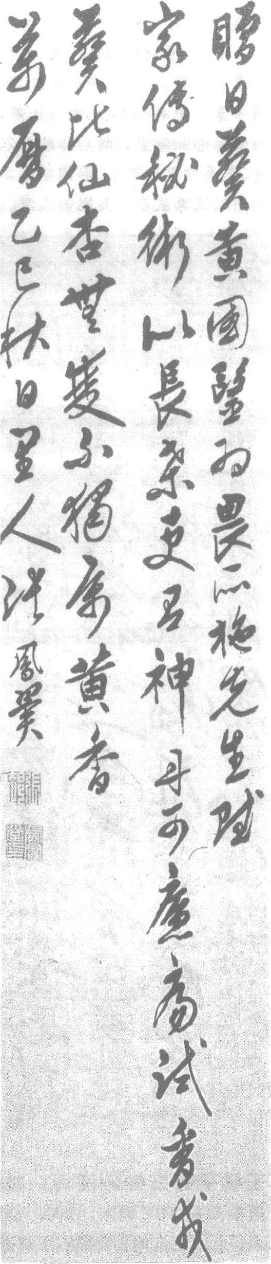 | 释义 | 张凤翼行书自书诗轴明。纸本。纵142.3厘米,横31.5厘米。北京故宫博物院藏。张凤翼(明嘉靖六年—明万历四十一年,即公元1527—1613年),字伯起,长洲(今苏州)人。嘉靖四十三年中举,晚年不仕,鬻书为生。好填词作诗文,与其弟献翼、燕翼皆有文名。擅长书法。《艺苑巵言》评:“张贡士小楷拟曹娥,精雅有致,微伤矜局。平生临二王最多,退笔成冢,虽天然小竭,而规度森然。”这幅作品,行书七绝一首,师法二王,稍显峭瘦,用笔遒劲,为其晚年佳作。