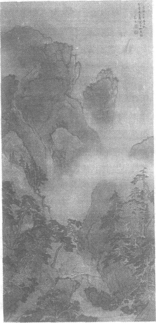 | 释义 | 张宏青绿山水图轴明崇祯十五年(公元1642年)。张宏绘。绢本设色。纵130.3厘米,横63.1厘米。上海博物馆藏。张宏(公元1580—1668年后),字君度,号鹤涧,江苏苏州人。他不但擅山水、人物、花卉,且兼长写意、工笔。山水笔意古拙,墨法湿润;人物写真,天然入格。与嘉定画家张彦齐名,并称为“二张”。此幅用石绿、石青、赭石及淡墨等明丽典雅的色彩勾勒而成。笼罩在云雾间的峰峦陡壁,虚实相生,千岩竞秀。远处山泉起伏跌宕,飞流直泻;近处幽涧流水潺潺。两岸山岩耸峙,松柏苍郁;崖边平石上,一人坐赏山景,其侍者双手捧物,正从隔岸山路上向溪桥走来。此图气象万千,山水晕染精细,用笔工致,意境恢宏。尤为称道的是人物形象的刻画,仅寥寥数笔,就将或陶醉于山景,或恭守于职责的内在情绪从举止动作中表现出来。画的右上角有自题:“崇祯壬午春日,祝金台先生寿,写于柳香阁,张宏”。下钤两方印。