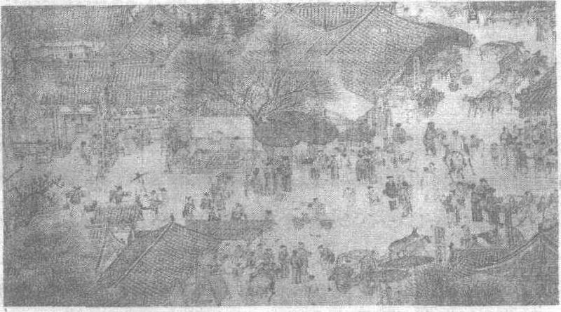 清明上河图 (局部) 张择端 张择端北宋画家,字正道,东武(今山东诸城)人。擅长“界画”,尤善画舟车、市肆、桥梁、城郭、街道等,皆具风格。存世作品《清明上河图》现藏故宫博物院。参见“清明上河图”。 张择端生卒年不详北宋画家。字正道,又字文友,东武(今山东诸城)人。徽宗时进入翰林图画院。善绘人物、市街、城郭、舟车。尤擅风俗画。现珍藏在故宫博物院的《清明上河图》(卷),公认为其传世的神品之作;《金明争池标图》(现藏天津市艺术博物馆)为其另一名作。他所绘的人物、建筑、精细工整,结构、比例准确合理,画风朴实,技法娴熟,刻画严谨,别成一家。 张择端北宋画家。生卒年不详。东武(今山东省诸城市)人。活动于12世纪。专工界画宫室,尤擅舟车、市肆、桥梁、街衢、城郭,自成一家。1119~1125年供职翰林图画院。作有《清明上河图》卷(24.8cm×528.7cm),画有人物550余人,船20余只,车轿20余乘,画上有后世收藏印67方。 张择端北宋画家。字正道,东武(今山东诸城)人,宣和年间翰林待诏,画市桥径郭,舟船车桥等社会民情风俗题材,以善画楼阁著称。《清明上河图》是其代表作。画面描绘了北宋末期,汴京(河南开封)从城郊到城内街市,汴河两岸清明时节的繁华景象。人物繁多刻画细致,是以各个阶层的人物活动为中心,深刻地把这一历史时期的社会动态和人民生活状况展示了出来。《清明上河图》着重描写了虹桥和城门楼两段画面,从汴河水面的旋涡可以看出汴河水流之急和船只来往的繁忙。特别是将要通过虹桥的大船,船夫都在紧张而迅速地放倒桅杆,桥上桥头的行人和观景的市民,熙熙攘攘,来往不息。城门楼部分表现的雄伟高大,一个骆驼队正在徐徐通过城门向前行进。总之《清明上河图》构图之雄伟,表现场面之大,描写之具体深刻,是前代之所未见。把工、农、商、医、卜、僧道,马、牛、羊、拉车、乘轿,大街小巷,百肆杂陈,河港池沼,船只来往,茅蓬村舍等无所不具,并且做到了高度的艺术概括。《清明上河图》是一幅描写丰富,有高度真实性,反映古代生活面貌的历史艺术名作。给人民以丰富的美感和享受。 张择端北宋画家。字正道,一作文友,东武(今诸城)人。幼好读书早年游学汴京(今河南开封),后习绘画。徽宗(1100—1125)朝供职翰林图画院。专工界画宫室,尤擅绘舟车,市肆、桥梁、街道、城郭,自成一家。以失位家居,卖画为计。其画富有生活气息。存世作品《清明上河图》卷,为其代表之作,描写当年汴京近郊在清明时节社会各阶层的生活景象,反映了奢华逸乐和贫困辛劳对比鲜明的情状,是一件具有重要历史价值和艺术价值的风俗画。相传作品还有《西湖争标图》,描绘端午节龙舟比赛的热闹场面。 |