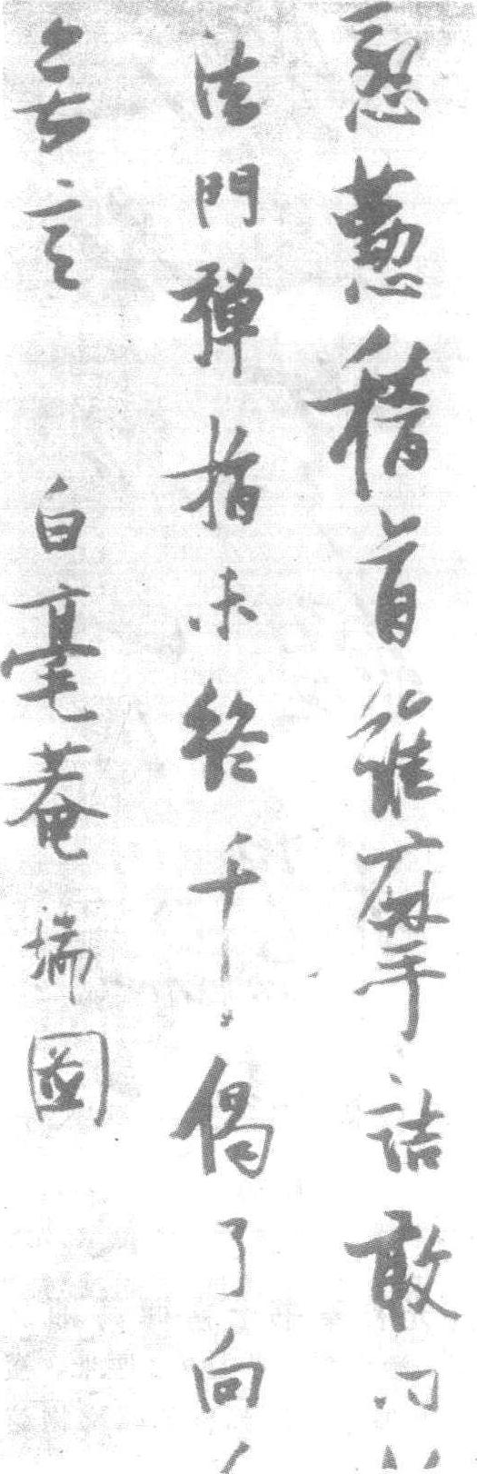 | 释义 | 张瑞图行书七言律诗轴明。绫本。纵193厘米,横46.5厘米。江苏省南京博物院藏。张瑞图(见《张瑞图行草书五言绝句轴》条目)。此行书七言诗:“殷勤稽首维摩诘,敢问如何是法门?弹指未终千偈了,向人还道本无言。”款署:“白毫庵瑞图。”其书墨色淋漓,结体奇倔,以折代转,笔力矫健、雄强,结字大小错落、各有形势,浓墨重笔,跳荡、飞动、恣肆,从每一细部都强化了其书的整体气势。