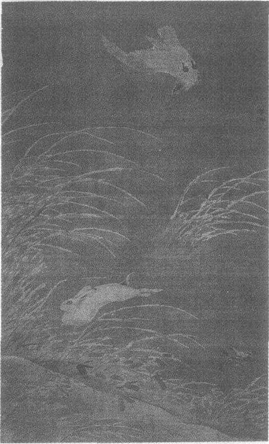 | 释义 | 张路苍鹰攫兔图轴明。张路(见《张路吹箫女仙图轴》条目)绘。绢本墨笔。纵158.2厘米,横97.3厘米。江苏省南京博物院收藏。此图绘的是苍鹰欲攫兔子的紧张场面。一只矫健的雄鹰在无际的旷野上空飞行时,忽然发现地面上有只野兔,便陡然调转方向,盯视着美味可口的猎物,蜷曲双爪,振展双翅,作向下俯冲扑击状。兔子感到大势不妙,双目直视前方,竖起双耳,作腾跃逃遁状。旁边的两只雀鸟惊飞,拍翅背向而逃。茅草随风摇曳,更烘托出鹰攫兔的紧张氛围。此图在画法上并没有十分狂放,在对鹰、兔、雀鸟动态神情的精妙刻画上,运笔婉转,跌宕起伏;背景的烘托,明暗适度,恰到好处。画面栩栩如生、呼之欲出。堪称绝妙佳作,与林良、吕纪等人的院体水墨写意画一脉相承。署款:“平山”。钤〈张路〉朱文方印。