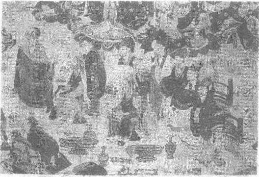 | 释义 | 弥勒经变(男剃度)壁画盛唐。纵47厘米,横80厘米。甘肃省敦煌县莫高窟第445窟北壁东侧壁画。此幅弥勒经变描绘的是:一国王名儴佉,十分富有,将珍贵的七宝台献给弥勒菩萨,菩萨将其施给众婆罗门,婆罗门立即拆毁分走。弥勒见此感叹人生之须臾无常,坐在龙华树下修行成佛。儴佉王也率大臣、太子、王后等八万四千人随弥勒出家修行。这个局部表现的就是儴佉王与太子天色剃发的情形。两位主人公端坐,各有一比丘在小心翼翼地为其剃发,侍者捧器跪于一旁承接。群臣或捧物或笼袖恭立。弥勒佛前有比丘在虔诚地跪拜,另有比丘侧身回首仰望弥勒。人物线条富于韵律感,衣衫晕染得体,人物神态生动,是唐代人物壁画中的优秀之作。