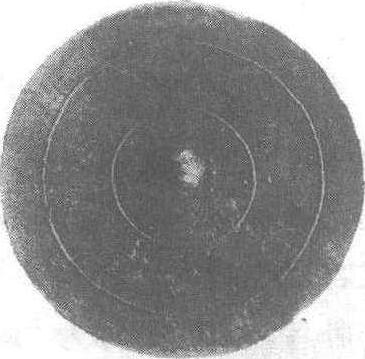 战国。直径13厘米。1955年四川省成都羊子山长方形竖穴土坑出土。四川省博物馆藏。圆形,通体略有剥蚀,镜身厚重。镜面平直光泽,背面中央有圆形钮,外饰三圈窄弦纹。