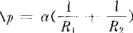 2是过液面上任一点O两个互相垂直的正截口(包含过O点的法线的平面在曲面上截出的曲线)的曲率半径。虽然过O点的不同正截口有不同的曲率半径,但在微分几何中可以证明,任意一对互相垂直的正截口的曲率之和(1/R1+1/R2)都是相同的,因此,附加压强△p不因所取正截口的不同而改变。很容易看出,球形液面附加压强的公式是拉普拉斯公式的特例。对于柱形液面,R1=R,R