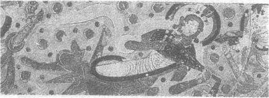 | 释义 | 弹琵琶飞天像壁画约为南北朝至隋。新疆维吾尔自治区库车县克孜尔尕哈石窟第30窟后室顶壁画。飞天身穿米黄和红褐色双重纱衣,胸前抱一曲颈琵琶在弹奏,她边弹奏边飞舞,绿色衣带随风飞扬,形成漂亮的弧线。她的腿伸展,另一腿弯曲向上呈九十度角,姿态轻松活泼,表明她飞翔的自由自在。飞天周围衬以朵朵飞旋的天花。此图线条粗犷豪放,局部施以晕染,衣纹用深色线描绘,具有很强的装饰性。
