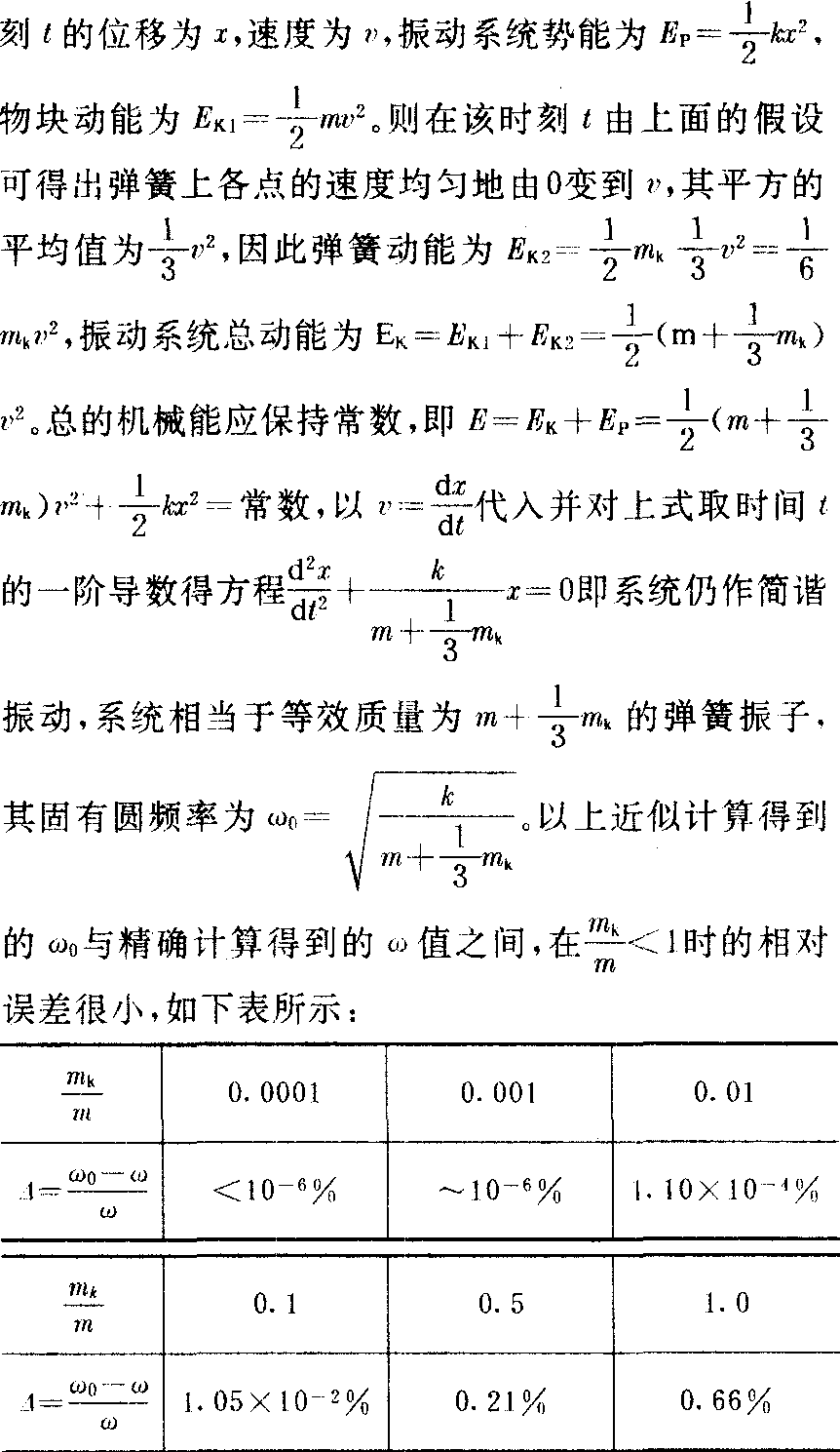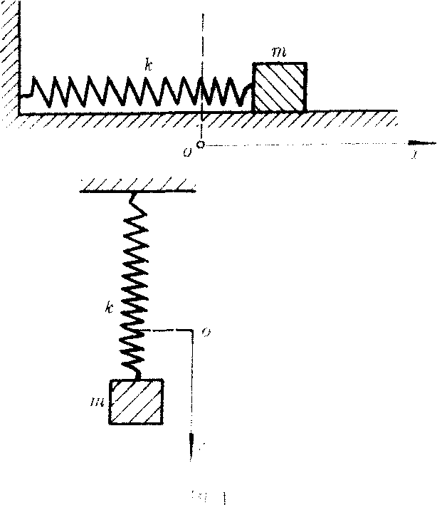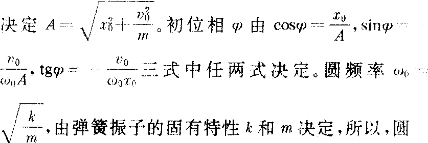 | 释义 | 弹簧振子tanhuang zhenzi简谐振动的一个理想模型。由弹簧和一物块连接构成振动系统(图1),当物块可视为质点,弹簧质量与物块相比可忽略不计,振动时一切阻尼可忽略时,这种振动系统称为弹簧振子。弹簧振子置于水平光滑面上时,物块在水平方向上作简谐振动,弹簧振子竖直悬挂时,物块在竖直方向上作简谐振动。设物块质量为m,弹簧弹性系数为k,以平衡位置为x轴原点o,用x坐标表示物块的位移,物块所受弹性力为f=-kx,物块的动力学微分方程为d2x/dt2+k/mx=0,其解为物块的运动学方程x=Acos(ω0t+ᵠ),所以弹簧振子作简谐振动。振幅A由初位移x0和初速度v0 图2 |