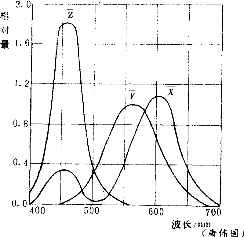 | 释义 | 三原色sanyuanse能混合成各种色光的三种基本色。又称三基色。这三种基本色分别为红色、绿色和蓝色。实验表明,用这三种基本色,按不同的亮度比例相加混合,可以得到任何一种颜色。杨和亥姆霍兹创立了颜色视觉的三色理论,理论认为:人眼视网膜上有三种神经纤维,每种神经纤维的兴奋都引起一种原色的感觉,色光引起三种纤维不同比例的兴奋,这些信号经过神经系统的分析处理,引起不同的颜色感觉。现代神经生理学已经发现:视网膜上确实存在三种视锥细胞,它们的敏感峰分别在红、绿、蓝区域。三色理论能充分说明各种颜色的混合现象。彩色摄影和彩色电视中所得到的彩色,是三原色的相加混合。色度学是以视觉的三色理论为基础而建立的,但是国际照明委员会规定的三种原色不是纯光谱色,也不在实际中存在,只作为下图中曲线所规定的数学抽象而存在,横坐标为波长,纵坐标为所需某一波长光的相对值,称之光谱三刺激值。