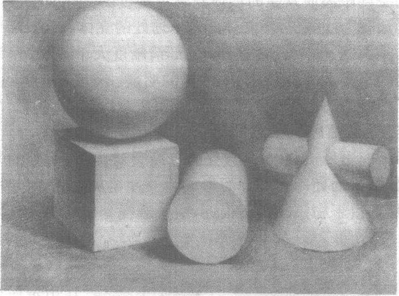 | 释义 | 形体明暗Xingti mingan物象形体呈现的明暗变化。形体的明暗变化不同,其主要原因是由于形体结构的不同。世界上物体有各式各样的形体结构,可归纳为六面体、圆柱体、圆椎体和球体等基本形体,亦称基本几何形体,和由基本形体结构而成的组合形体。基本形体的明暗特点和变化规律,是素描必要掌握的基本规律之一。❶立方体:所见的三个面,受光后形成界线分明的亮、灰、暗三种色调。每个面色调均匀,略有深浅变化。其变化受光照和反光强弱、与画者的距离以及明暗对比等因素的影响。