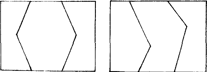 ❹“最好完形律”记忆变迁原则。心理学家浮尔夫于1919年研究人的形象记忆现象中,发现人的记忆痕迹随着时间的推移而淡退,且按着最好完形的原则改变原来观察到的形象记忆。他曾做过一个实验,让被试者看一些不规则不对称的图形,过30秒、24小时、1周或数周之后,迭次默画出他们记忆中的图形。结果所画图形,不但渐渐改变原来形状,而且均是向着对称、完整、简单的方向变化。图1是初试图形,图2是最后一次默画图形。所谓“完形”,原由德语Gestalt译成,直接译为“格式塔”,含有整体结构的意思。所谓“最好完形律”,是指人认知客体时总是从整体的、完形的特点反映事物,总是以整体、完形的结构储入头脑中。儿童对观察的物象,是以完整、简单、均衡的结构储存在记忆中的。而繁琐、纷乱、畸形、破缺的结构,在记忆中是不稳固和容易改变的,必然向完整、简单、均衡的方向改变。这就是格式塔心理学的“最好完形律”的记忆变迁原则。儿童所画的东西,便是依“最好完形律”的这条记忆变迁原则去简化记忆中的形象。因此,儿童绘画中的形象,皆是比较简化的、完整的、对称结构的形象。这不仅表现在儿童作表象画上,而且临摹也倾向于简化。美国心理学家加登纳曾说:“当儿童面对着范例,并被要求去模仿时,他们倾向于简化之,倾向于表现其收尾,并赋予较明显的对称。他们试图把自己所见到的组织起来,如果可能的话,就向它赋予再现的特质。对于没有画完的范例,他们一般会在自己的画里把它画完全。他们还对不规则的图形进行修饰,使之易于掌握和记忆。这些实践反映了通过制作行为去组织视觉输入的全面倾向,即使向它赋予了含义”(《艺术与人的发展》,光明日报出版社,第285页)。记忆变迁的原则,除了向最好完形律简化记忆形象之外,尚有向突出特点方向发展的趋势。这种趋势还受语言的影响。因此,儿童画中的形象往往夸大某种特点或局部特征。